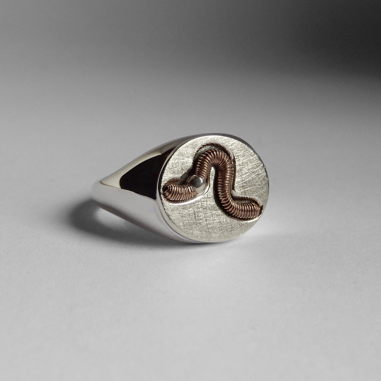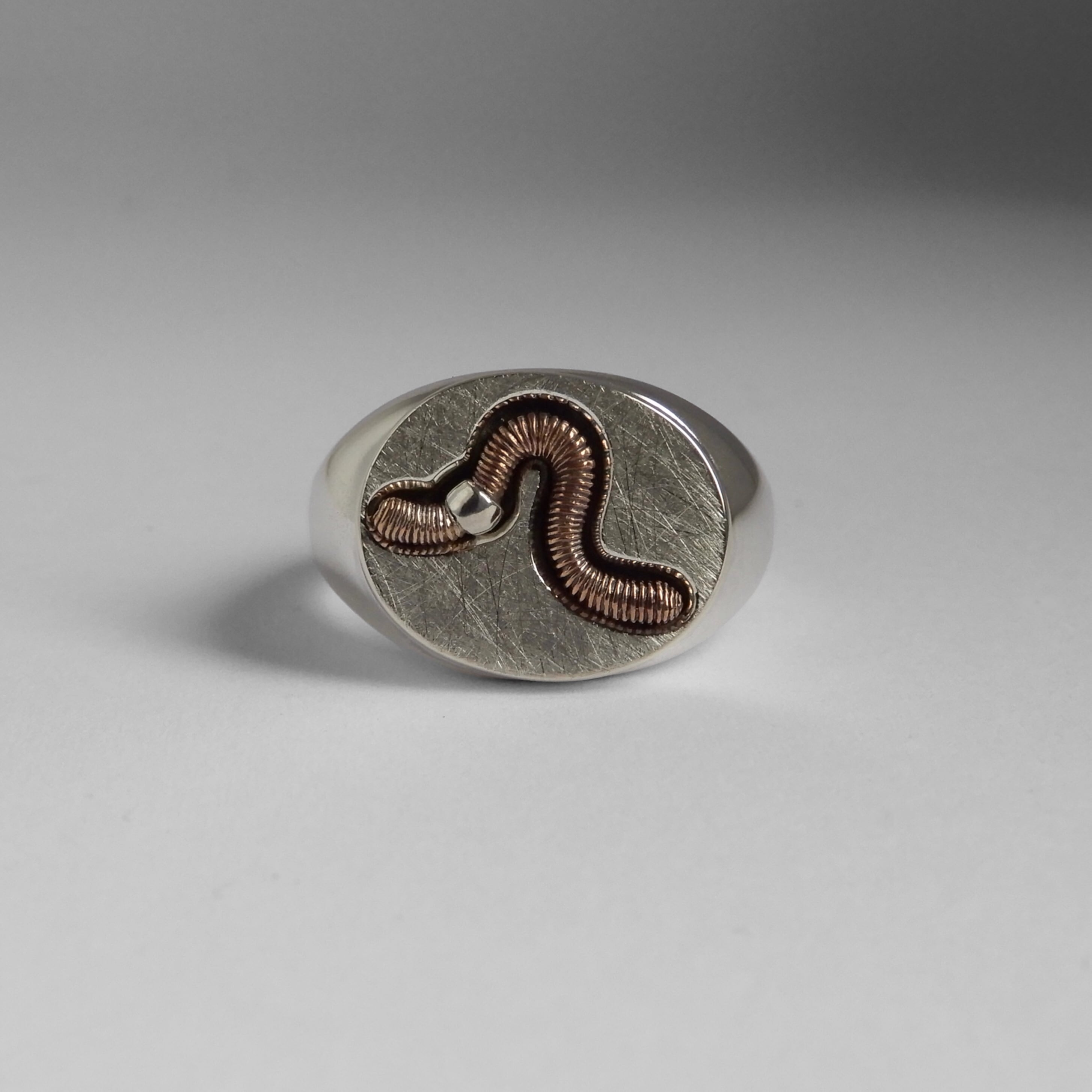 リアル過ぎず可愛さも出るよう少しポップにデザインしたみみずのリングです。